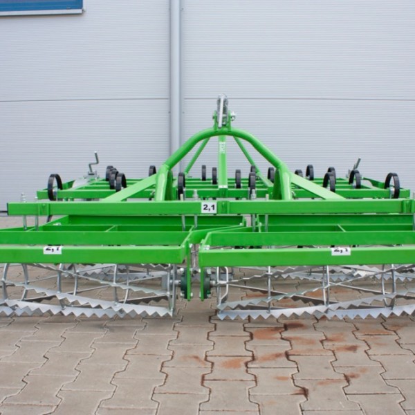 Agregaty uprawowe Carina przeznaczone są do przygotowania gleby do siewu podczas jednego przejazdu. Mogą być stosowane do kruszenia brył, niszczenia zaskorupionych gleb oraz niszczenia chwastów i mieszania nawozów mineralnych z glebą. Maszyna jest wyposażona w zęby sprężynowe lekkie, zakończone wymienną redliczką. Zęby mocowane są w 4 rzędach na ramie kultywatora. Rozstaw między zębami wynosi 10 cm. Z tyłu agregat może być wyposażony w wały strunowe pływające lub na docisku sprężynowym o średnicy 295 mm. Głębokość robocza maszyny jest ustalana za pomocą kół podporowych i wynosi 12 cm. Na gleby cięższe, zlewne gdzie występuje duża liczba brył zaleca się zastosowanie wału przedniego, który je rozkruszy i rozbije. Dla łatwiejszego agregatowania z ciągnikiem agregat może być wyposażony w belkę sprzęgową.