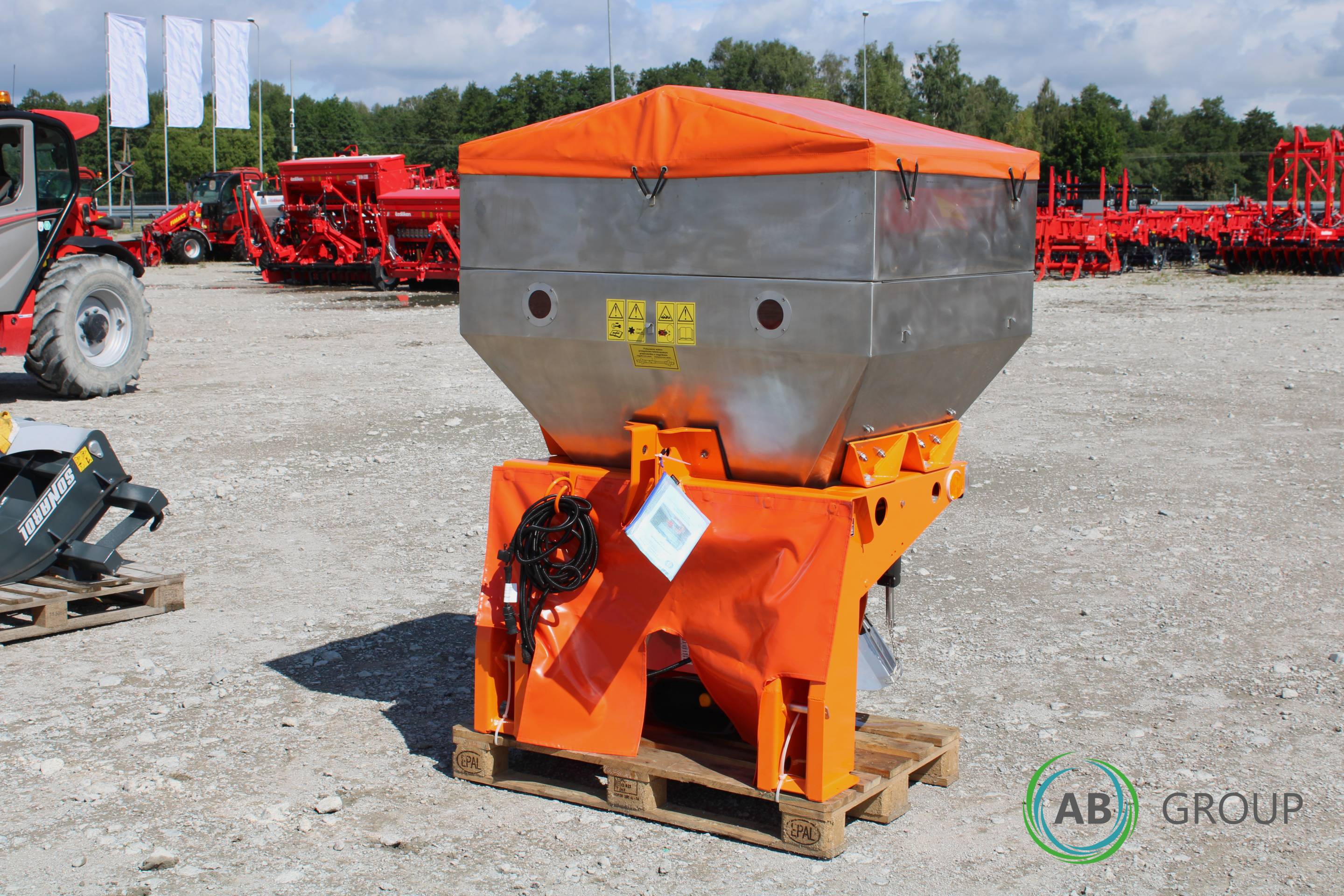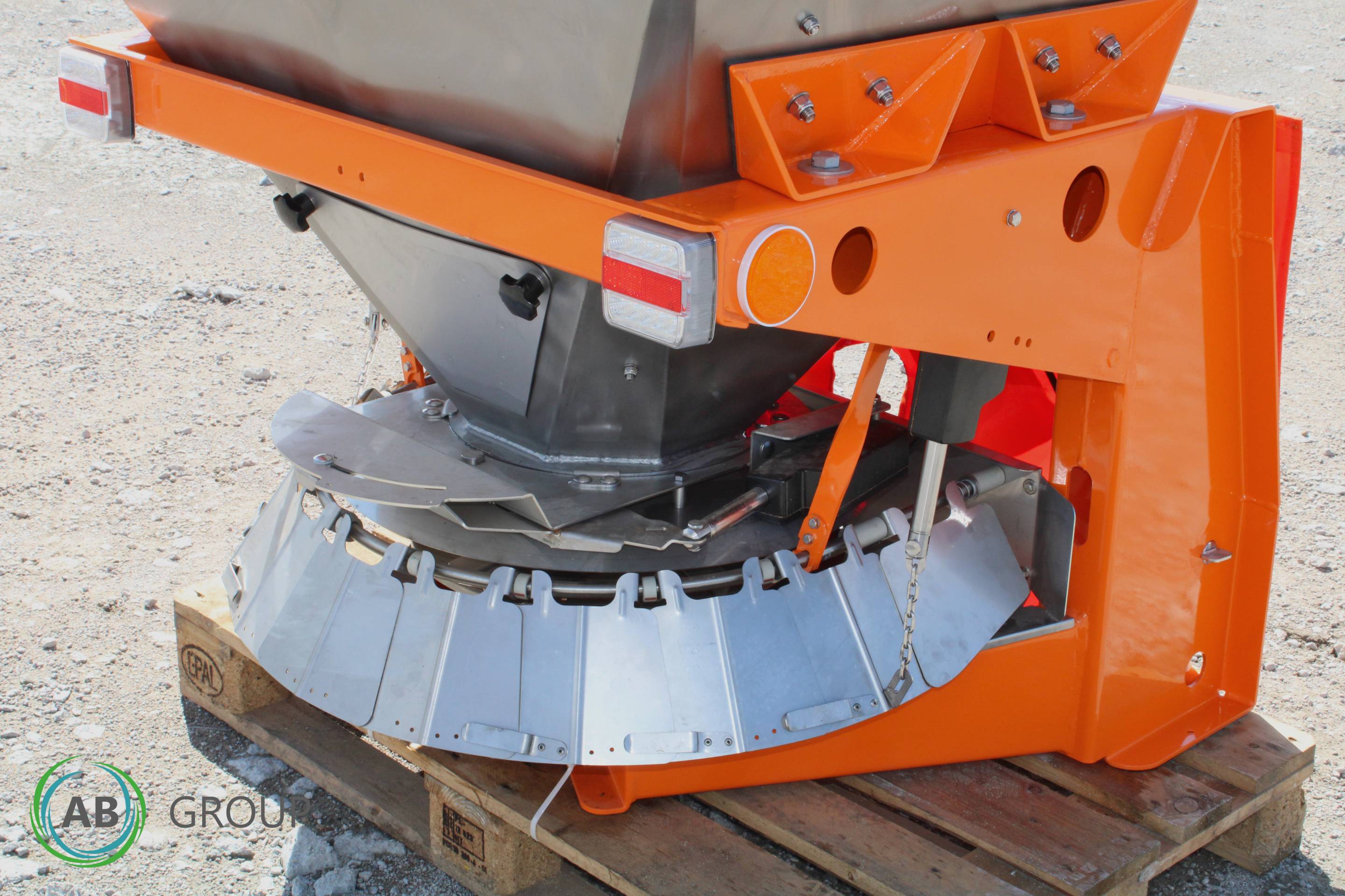 - Trémie, agitateur, disque d'épandage avec pales, protections et dispositif de bordure en acier inoxydable résistant aux acides,