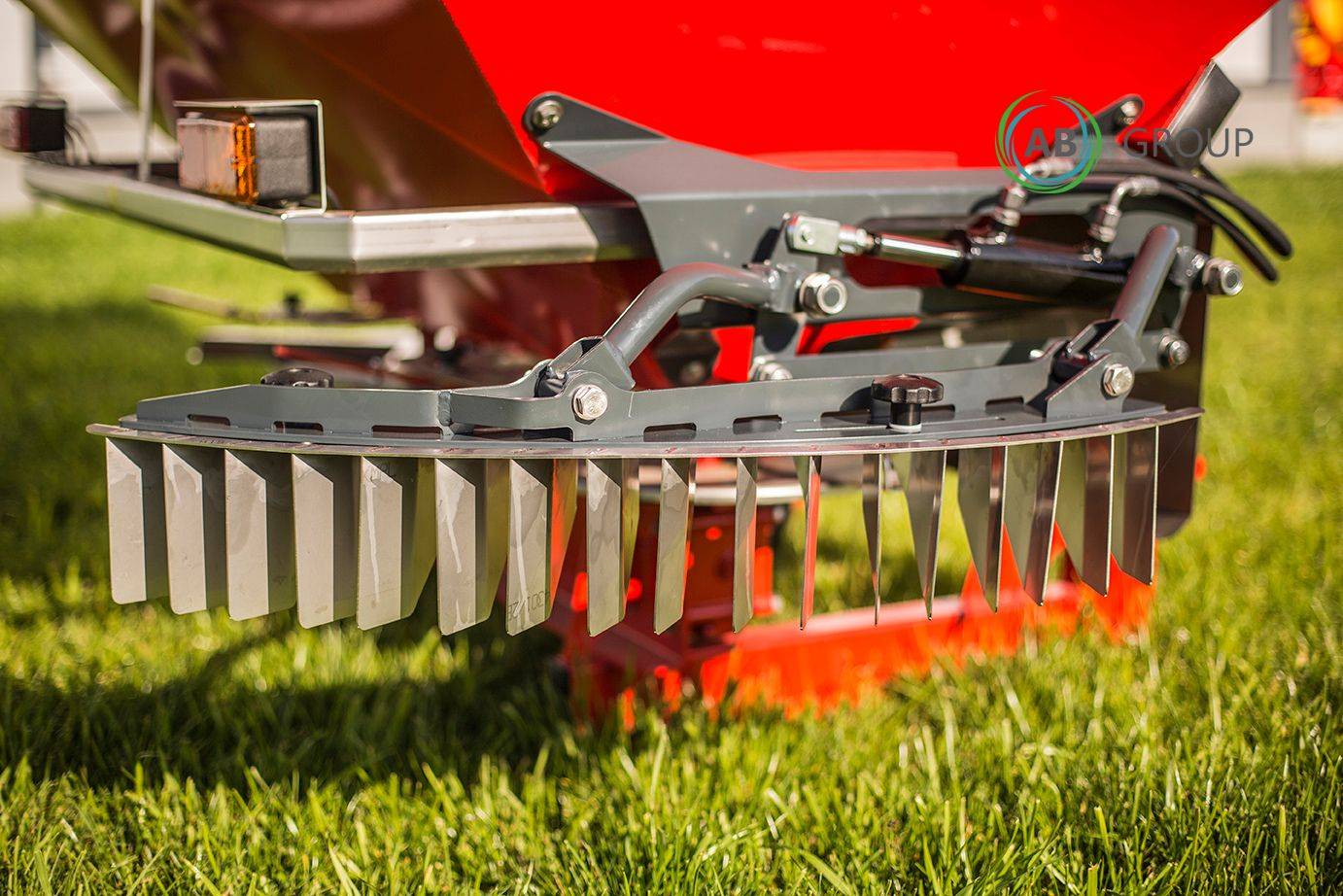 The JUNIOR II Plus fertilizer spreader is designed for the uniform distribution of a precise dose of granular fertilizer over a set working width. It is mounted on the tractor’s three-point hydraulic hitch. This machine is equipped with two spreading discs. The structure is made of metal coated with durable paint, while the bottom of the spreader and the entire spreading mechanism (disc, paddles, cover) are made of acid-resistant stainless steel. Standard features include hydraulic control / opening via actuator (right-left side) and road lighting.