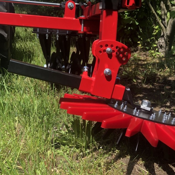 Pielnik sadowniczy KLAUDIA jest przeznaczony do mechanicznego niszczenia chwastów w sadach i uprawach, gdzie wymagane jest pielenie boczne. Doskonale sprawdza się miedzy innymi w winnicach, sadach i plantacjach owoców jagodowych. Średnica gwiazdy pielącej wynosi 700 mm, co zapewnia szersze pokrycie uprawianej gleby. Gwiazda pieląca dostępna jest w trzech stopniach twardości: Miękki 80?, Średni 85?, Twardy 90?.