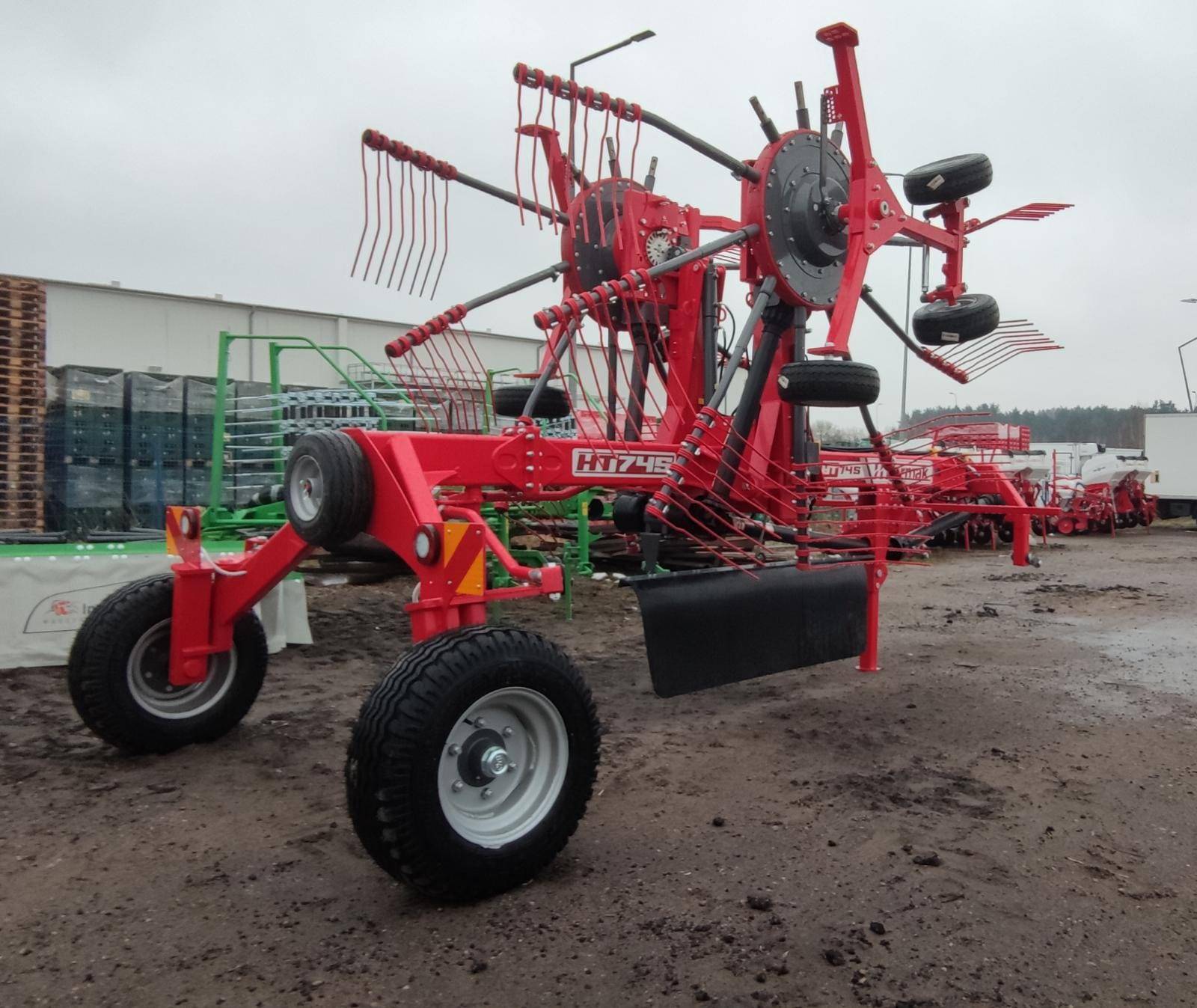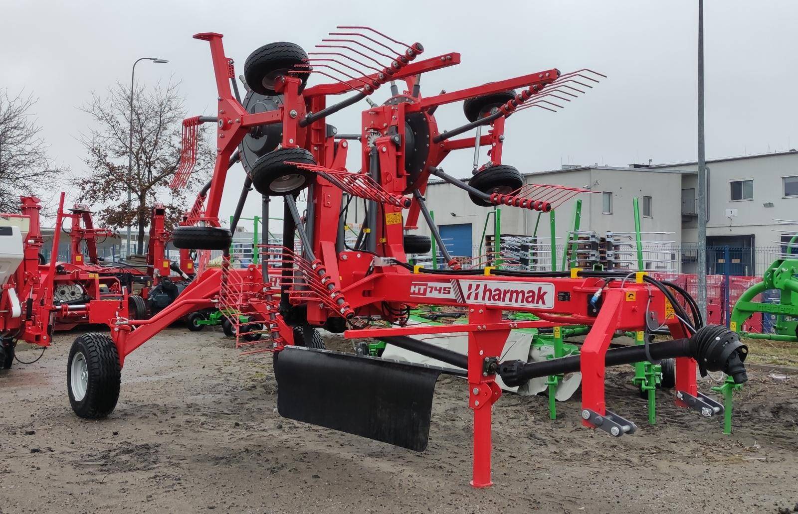 Przedstawiamy zgrabiarkę rotacyjną dwukaruzelową HARMAK HT-745. Szerokość robocza maszyny od 6.85m-7.35m. Co chrakteryzuje zgrabiarkę Harmak to: