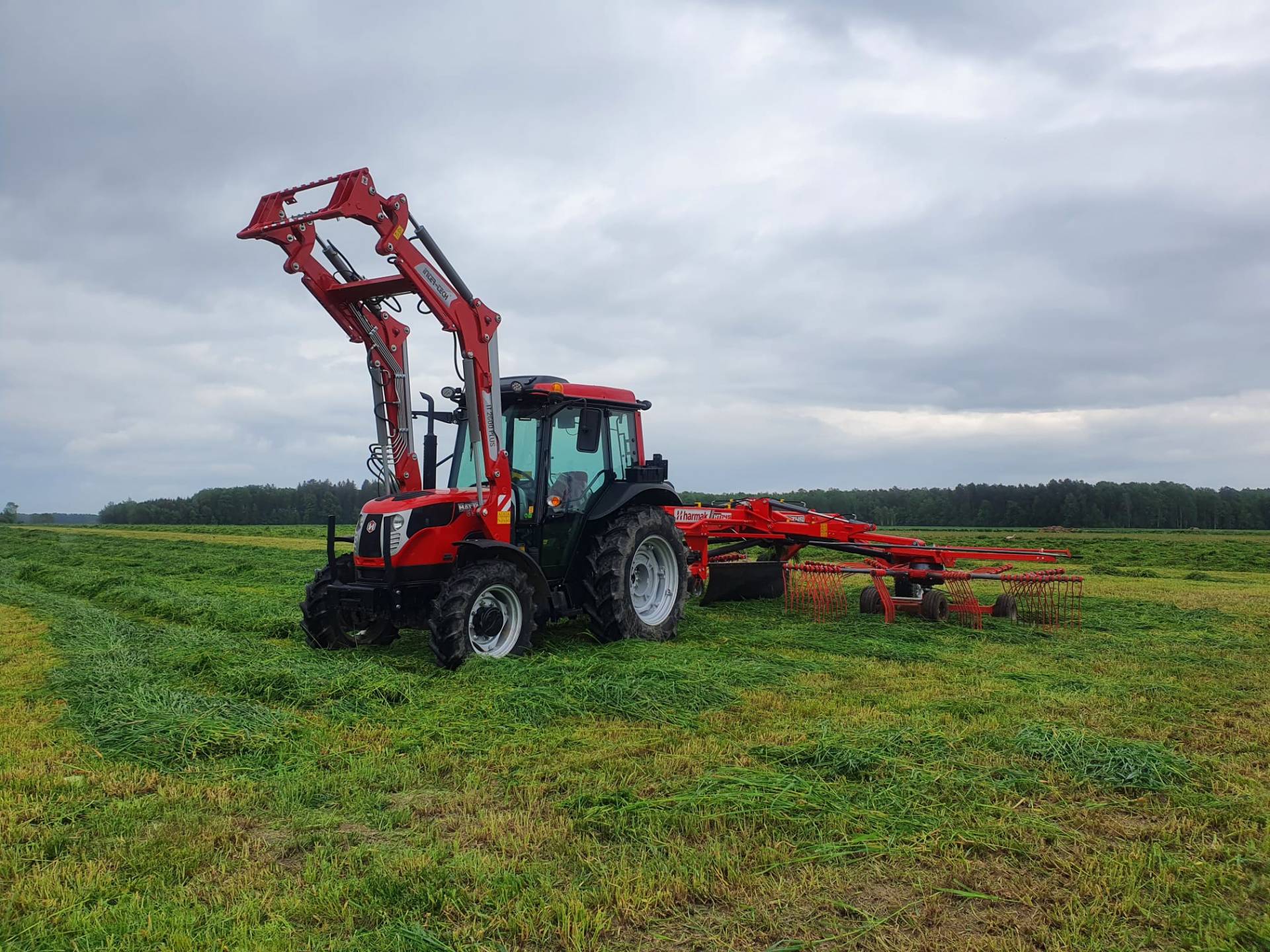 Dzisiaj na polu klienta odbył się pokaz maszyn. Pokazaliśmy przede wszystkim naszą kosiarkę, zgrabiarkę dwukaruzelowa, prasę belującą i ładowarkę. Takie spotkania są dla nas bardzo ważne, ponieważ nasi klienci mogą obejrzeć nasze maszyny "na żywo".