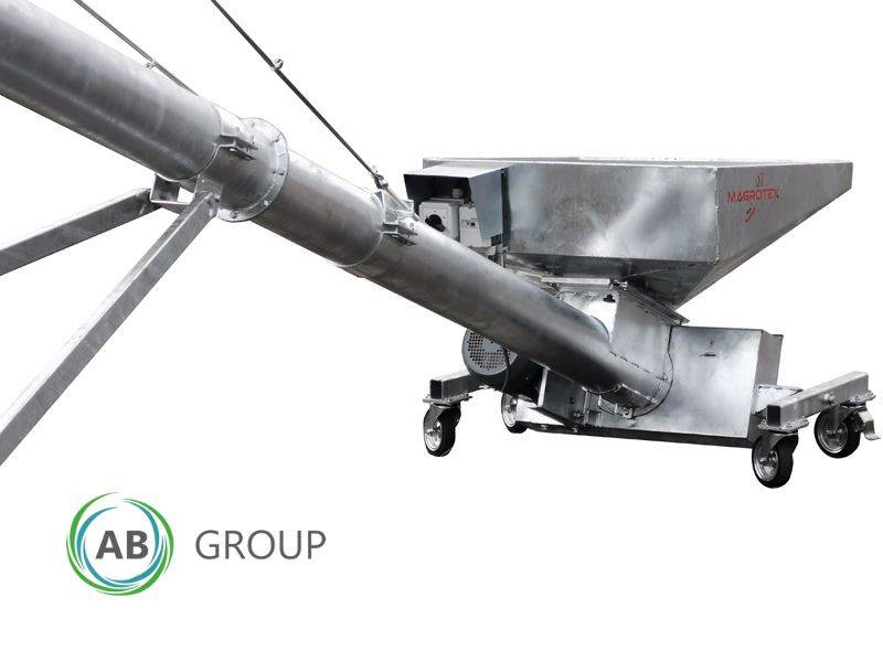 MAGROTEX – Przenośnik ślimakowy z koszem zasypowym 6–14 m (Ø150 / Ø200 / Ø250)