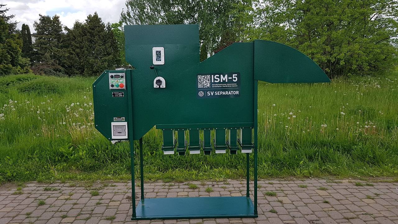 Der Getreidereiniger ist für die gleichzeitige Reinigung und Sortierung von Saaten (Weizen, Roggen, Gerste, Mais, Raps, Bohnen, Sonnenblumen, Flachs, Sojabohnen, Erbsen, Luzerne, Rote Beete, Linsen) und anderen Schüttgütern ausgelegt. Das grundlegende Funktionsprinzip von ISM-Separatoren ist die Trennung der Gemischpartikel im Luftstrom in Fraktionen, die nicht nur eine effektive Abscheidung von Verunreinigungen aller Art, sondern auch eine Sortierung nach aerodynamischen Eigenschaften (Masse und Feuchtigkeit) ermöglicht.
